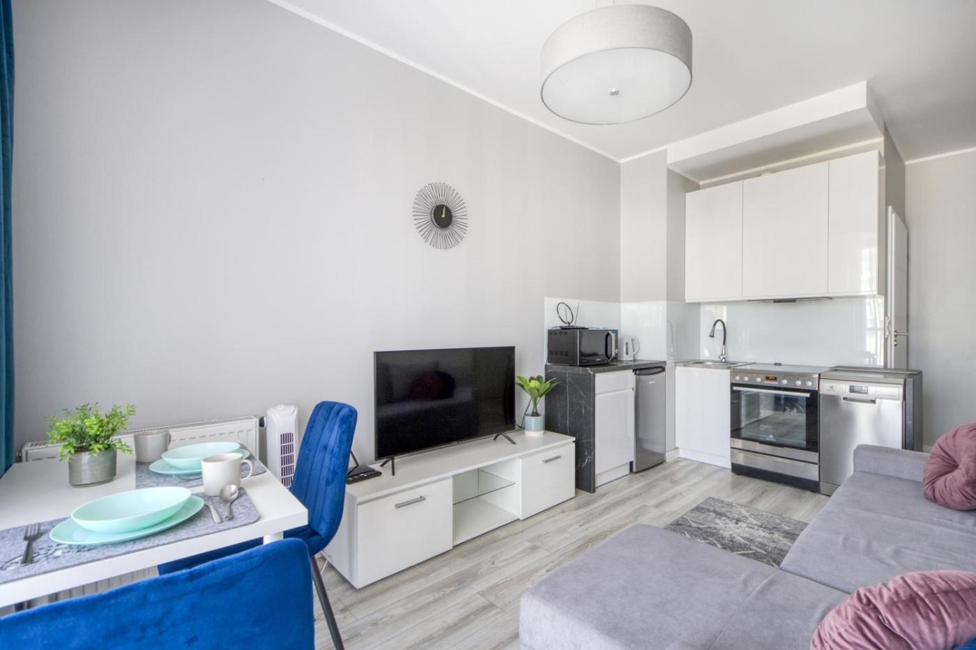Apartament z 1 sypialnią. Boasting a private entrance, this apartment includes 1 living room, 1 separate bedroom and 1 bathroom with a shower and a hairdryer. Guests can make meals in the kitchenette that is fitted with a stovetop, a refrigerator, a dishwasher and kitchenware. The apartment offers a flat-screen TV with streaming services, a washing machine, soundproof walls, a tea and coffee maker as well as garden views. The unit has 2 beds. Apartament - 4 osobowy. Powierzchnia pokoju ok.: 33 mkw.